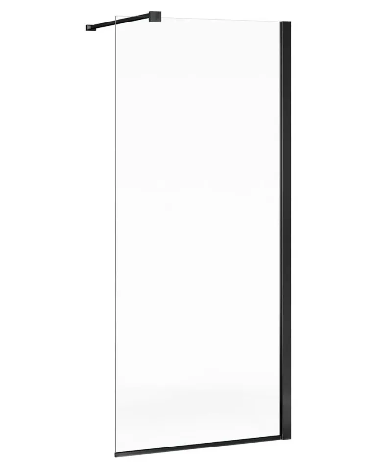 Gustavsberg Square on kiinteä suihkuseinä karkaistusta turvalasista (6 mm), jossa mattamustat profiilit ja seinätuki. Seinätuki on säädettävissä välillä 800-1000 mm.