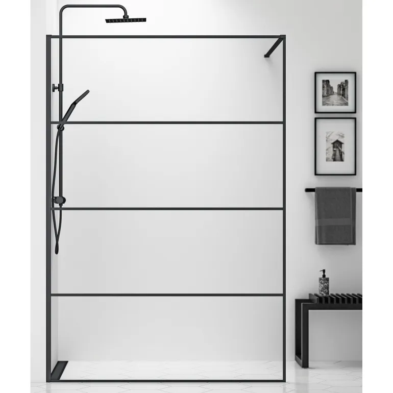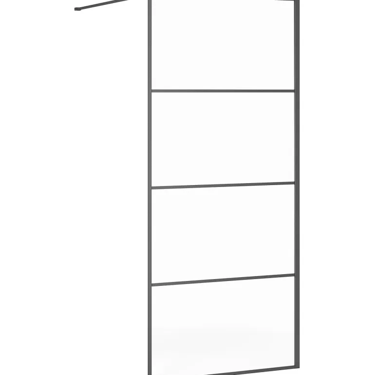 100 cm leveä suihkuseinä mustalla mattapintaisella anodisoidulla alumiinilla, jonka kaikki näkyvät yksityiskohdat ovat mustia. Kehykset lasin ulkopuolella estäen lian kerääntymisen.