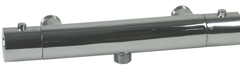 Kromatu suihkusekoitin virtauksen rajoittimella, lämpötilan rajoittimella ja keraamisella sululla. Sekoittimen keskietäisyys on 160 mm ja se on termostaattinen sekä kaksiotteinen.
