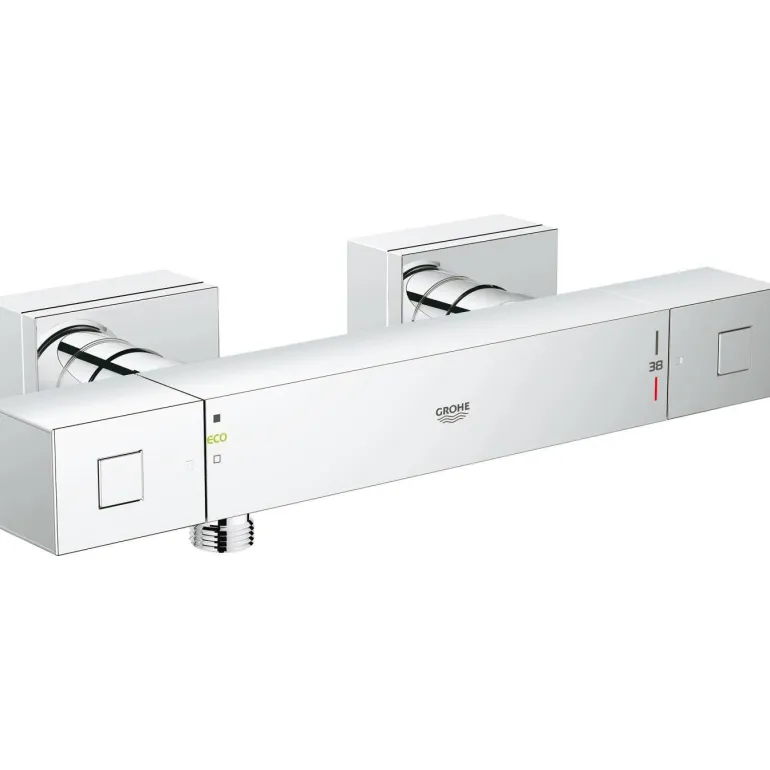 GROHE EasyLogic ‑asteikkorenkaassa merkinnät ovat hanakotelossa eivätkä kahvoissa, joten veden lämpötilan ja virtausvoimakkuuden valinta tuntuu helpolta ja luonnolliselta. GROHE SafeStop -painike suojaa sekä lapsia että vanhuksia palovammoilta, kun taas GROHE EcoButton -painike auttaa säästämään vettä. Kiiltävä kromattu GROHE StarLight -pinnoite pitää osat raikkaan näköisinä useiden vuosien ajan. Pyyhkiminen kuivalla liinalla riittää pitämään ne tahrattomina.