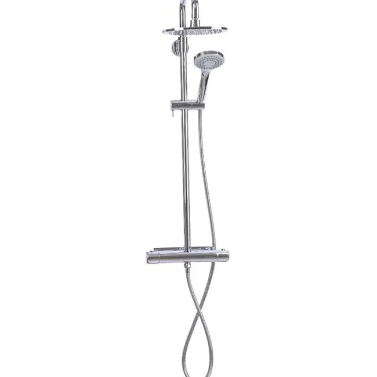 Suihkusetissä on yksisuihkuinen käsisuihku, termostaattisekoittaja 160c/c, suuri metallinen kattosuihku ja 175 cm pitkä kiertymätön suihkuletku. Sekoittajan sisäänrakennetun invertterin avulla voit vaihtaa katon ja käsisuihkun välillä.