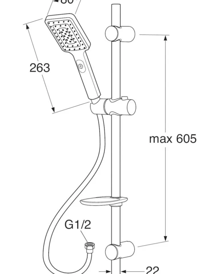 Gustavsberg Square on suihkusetti, joka sisältää suihkutangon, 3-toimisen käsisuihkun painikkeella ja 1,75 m suihkuletkun. Asennetaan ruuveilla tai liimalla. Suihkutangossa säädettävä asennusleveys (max. 605 mm). Helppohoitoiset suihkusuuttimet, joista on helppo pyyhkiä kalkkikertymät. Mukana käytännöllinen saippuateline.