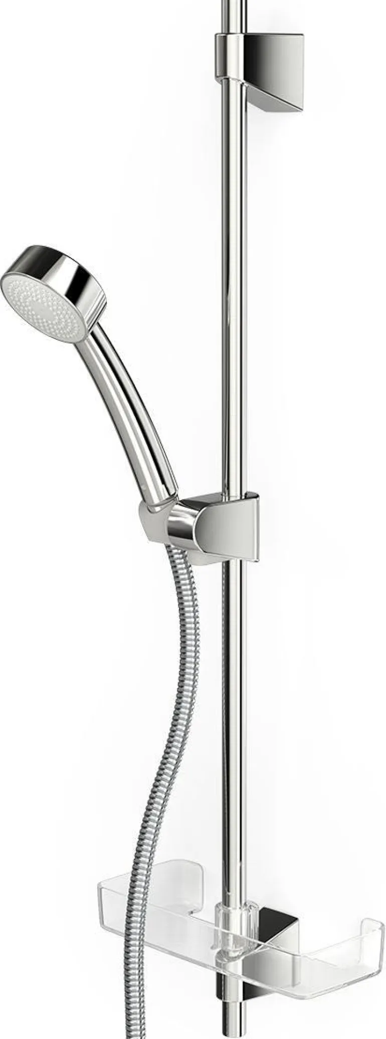 Oras Apollo -suihkusetti kromi/harmaa, jossa on käsisuihku, suihkutanko, suihkuletku ja saippua-astia. Helppo asentaa joustavilla seinäkiinnikkeillä – maks. 720 mm.