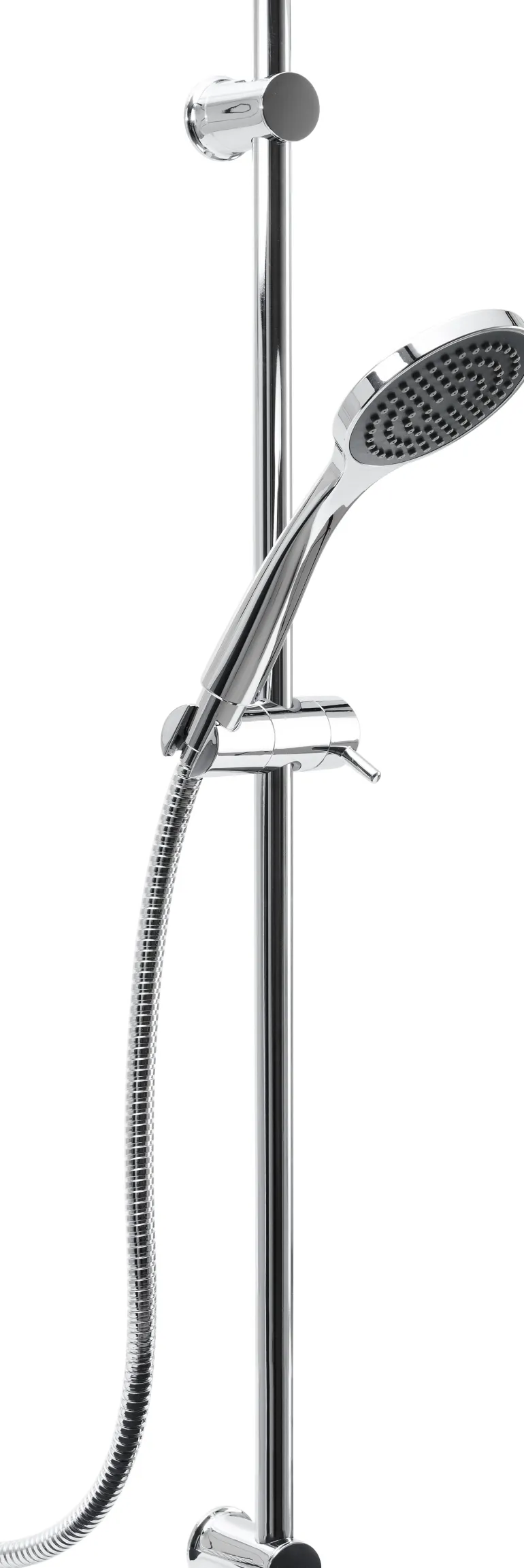Suihkusetti 1-suihkuisella käsisuihkulla, letkulla ja tangolla. Setti säästää vettä jopa 35%. Tangossa on säädettävä yläseinäkiinnike, joka on helppo asentaa olemassa oleviin reikiin. Käsisuihkussa on Easy-Clean-toiminto, joka estää kalkkeutumisen. Suihkuletku ei kierry ja se sopii sekä suihku- että kylpyammesekoittimiin.