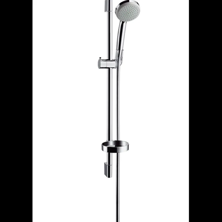 Suihkusetti, joka sisältää käsisuihkun, suihkutangon, suihkuletkun, liukusäätimen ja saippua-astian. Suihkutyyppi Rain ja maksimivirtaama 3 bar 16 l/min. Suihkutangon pituus 65 cm.