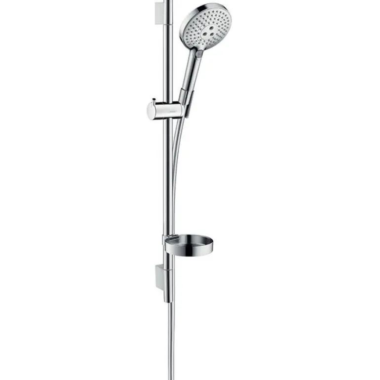 Suihkusetti, joka sisältää käsisuihkun, suihkutangon, suihkuletkun ja saippua-astian. Suihkussa on kolme eri suihkutyyppiä ja suurin virtausnopeus 3 baarin paineessa 15 l/min.
