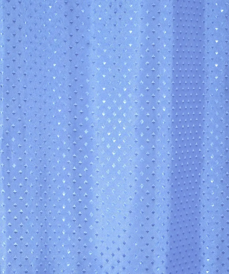 Valkoinen suihkuverho, jossa on kudottuja tähtiä. Mitat 180 x 200 cm, valmistettu 100 % polyesterista. Verho on antistaattinen ja homeenkestävä.