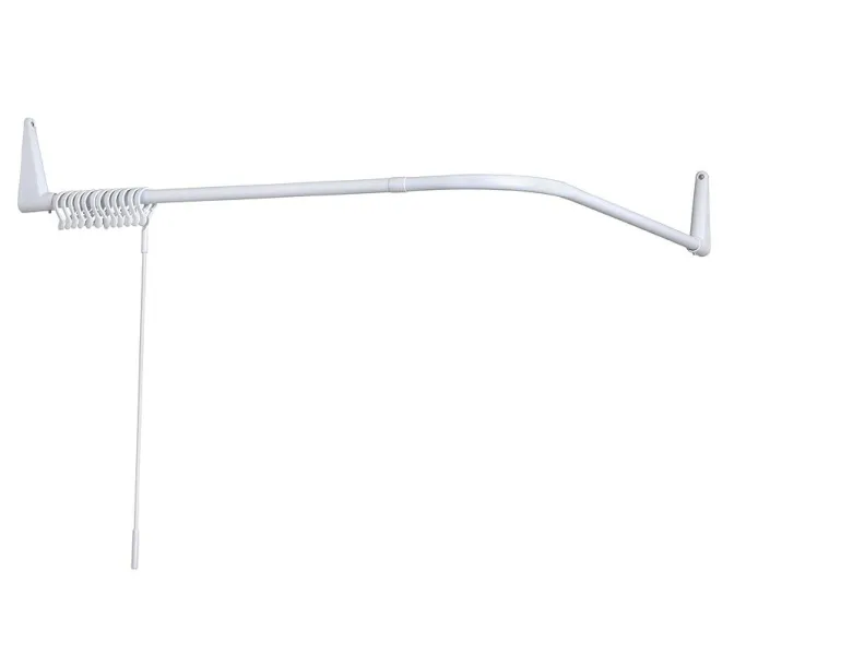 Kulmatanko kylpyammeisiin ja suihkuihin, 12 eri yhdistelmämahdollisuutta. Vapaasti seisova, ilman kattotukea. Vetotanko, 12 suihkuverhorengasta ja käännettävät, vakaat nailonkiinnikkeet. Muovipäällysteiset teräsputket.