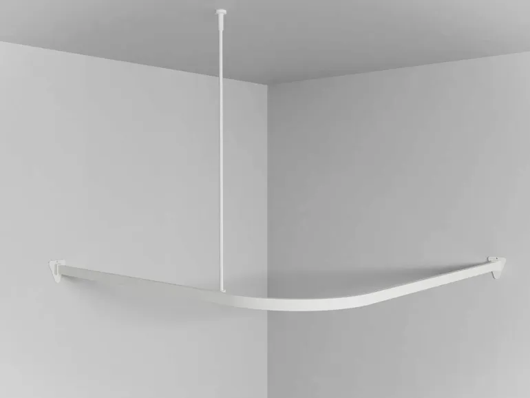 Svedbergs 61060 on suihkuverhotanko kulmamallinen. Valkoinen alumiini.
