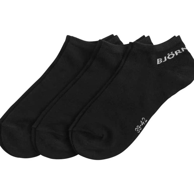 3 kpl valkoisia puuvillaisia joustavia nilkkasukkia maksimaaliseen kestävyyteen. Björn Borgin logo nilkassa.