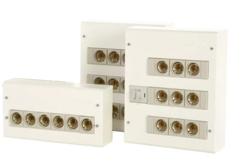 Vakaa ja palonkestävä tulppasulaketaulu 25 A, jossa vakiomalliset diazed-sulakkeet . Suunniteltu uus- tai täydennysasennukseen esimerkiksi asunnoissa ja toimistoissa. Valkoinen maalattu metallikotelo koostuu maadoitetusta ja asennusystävällisestä rungosta ja kotelosta, joka mahdollistaa kaapeli- ja putkiliitännät takaosan kautta ja kaikilta neljältä puolelta. Kosketussuojatut liitännät parantavat turvallisuutta kotelon asennuksessa. DIN-kiskojen alla on 20 mm tila. Kotelo voidaan varustaa taustalevyllä ja ovella kotelointiluokan IP32 saavuttamiseksi. Jaettava nollakisko. Täyttää vakuutusyhtiöiden paloturvallisuusvaatimukset.