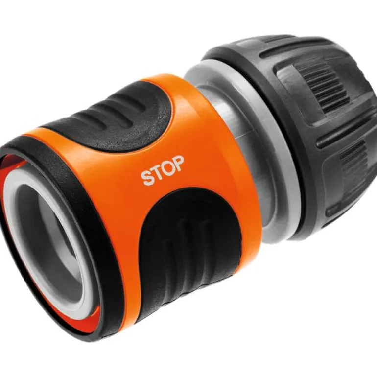 Sulkuliitin 19 mm:n (3/4″) letkuille. Nopea ja helppo liitäntä, kun letkun päähän vaihdetaan tarvikkeita. Kun liitettävä laite, esimerkiksi suutin tai sadetin, irrotetaan, veden virtaus katkeaa automaattisesti.