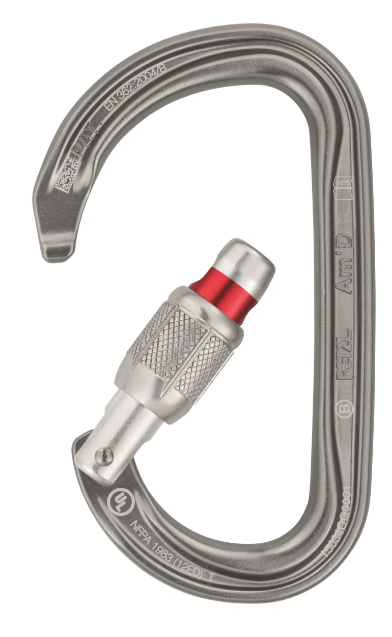 Petzl M34A SL ‑sulkurengas. Keskikokoinen D-muotoinen ruuvisulkurengas. Sopii useimpiin käyttötarkoituksiin, esim. varusteiden kiinnittämiseen valjaisiin tai silmukan päässä käytettäväksi. Am´D:ssä on Petzl Keylock ‑järjestelmä, joka estää takertumisen silmukoihin ja muihin varusteisiin. Punainen turvaindikaattori varoittaa näkyvästi, mikäli sulkurengasta ei ole lukittu.