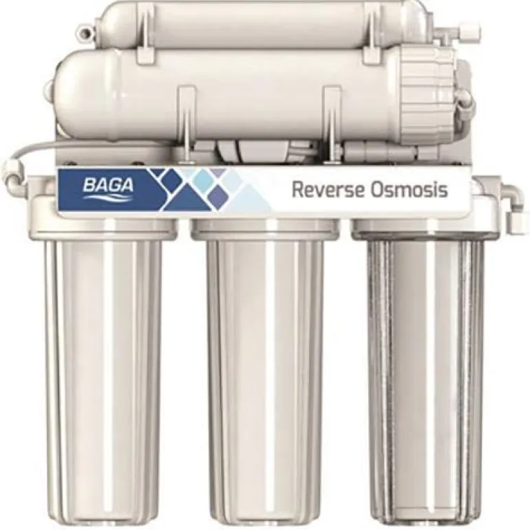 RO-50 on pieni ja joustava juomavesisuodatin, joka erottaa epäpuhtaudet johtamalla veden puoliläpäisevän kalvon läpi. BAGA RO-50:llä on korkea puhdistuskyky ja se erottaa vedestä suolan, fluoridin, uraanin, arseenin, nitriitin, nitraatin ja paljon muuta.