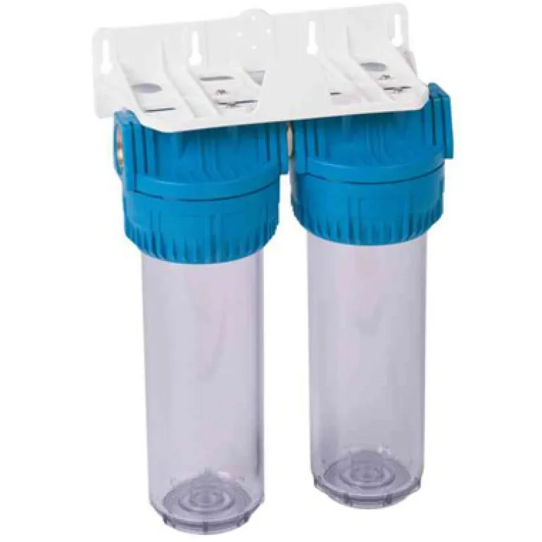 Kahden suodattimen säiliö patruunoille, joiden koko on 9 3/4″. Säiliö on samanlainen kuin Stora Björnissä, mutta siinä on sininen suodatinpää.