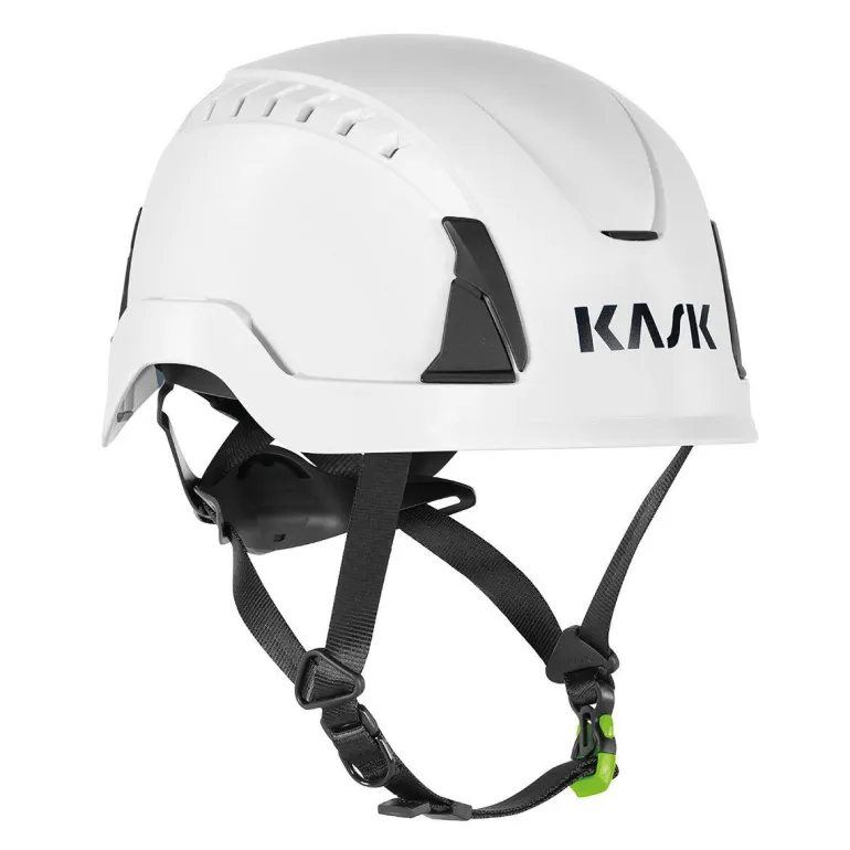 KASK PRIMERO PL on mukava tuuletusaukollinen työkypärä, joka tarjoaa erinomaisen istuvuuden, käyttömukavuuden ja helpon lisävarusteliitettävyyden. Monipistehihnastolla, paino vain 460 g. Mallissa on kevyt HD-polypropeenista valmistettu ulkokuori, jolla on vahva iskunkestävyys myös alhaisemmissa lämpötiloissa (-30 °C). Sisäpuolella paisutettu HD Polystyreenikenno, joka tarjoaa hihnarakenteisia kypäriä paremmat iskunvaimennusominaisuudet. Yhteensä 14 tuuletusaukkoa, jotka on suunniteltu maksimoimaan ilmanvaihto ja minimoimaan ylimääräisen aineksen pääseminen kypärän sisään. Patentoidun ERGO FIT SYSTEM -järjestelmän avulla voit nopeasti ja helposti säätää kokoa ja istuvuutta kätevän rattisäädön avulla ja liikuttaa pehmeästi muotoiltuja siipiä ylös ja alas maksimoidaksesi tuen ja vakauden. Soveltuu 52-63 cm pään ympärysmitalle. Pehmeä akryylileukahihna lisää säätömahdollisuuksia, leukahihnassa on 5 säätöpistettä ja sitä voidaan helposti pidentää niskan takaosasta suurempia pääkokoja varten, ja sitä voidaan myös säätää ja leventää lisätilan saamiseksi kuulosuojaimille. Hyvä yhteensopivuus kuppikuulosuojainten kanssa.