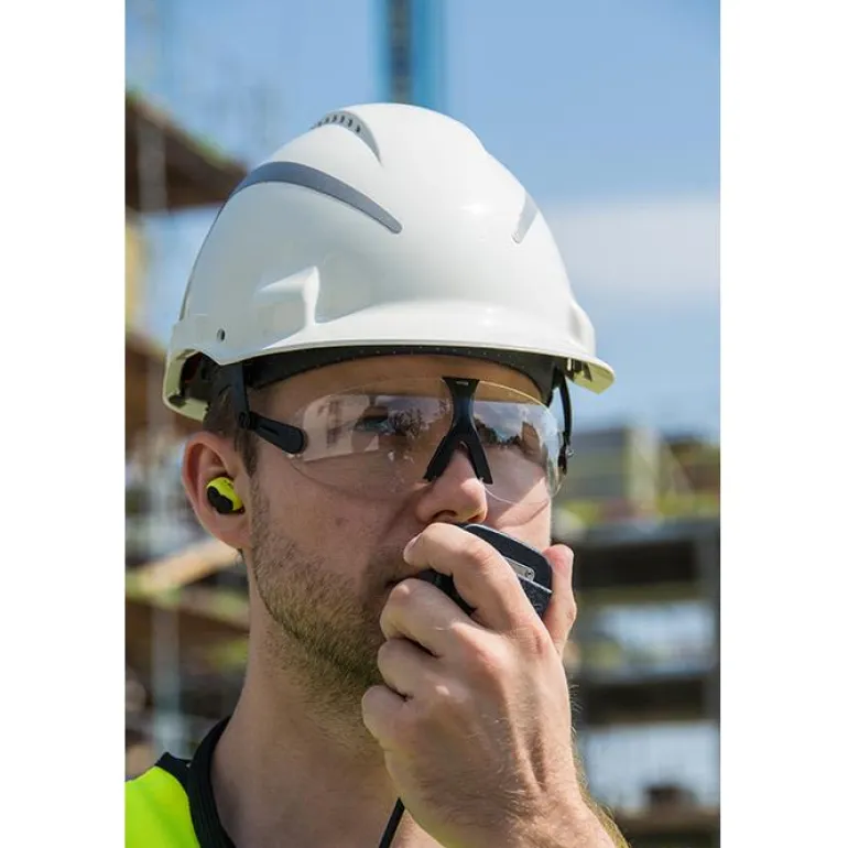 Kypärään kiinnitettävät 3M Peltor V9G -suojalasit ovat aina käytettävissäsi, kun tarvitset niitä. Lasit voi työntää kypärän sisään, kun niitä ei käytetä, ja ne on helppo ottaa tarvittaessa esiin ja säätää sopiviksi.