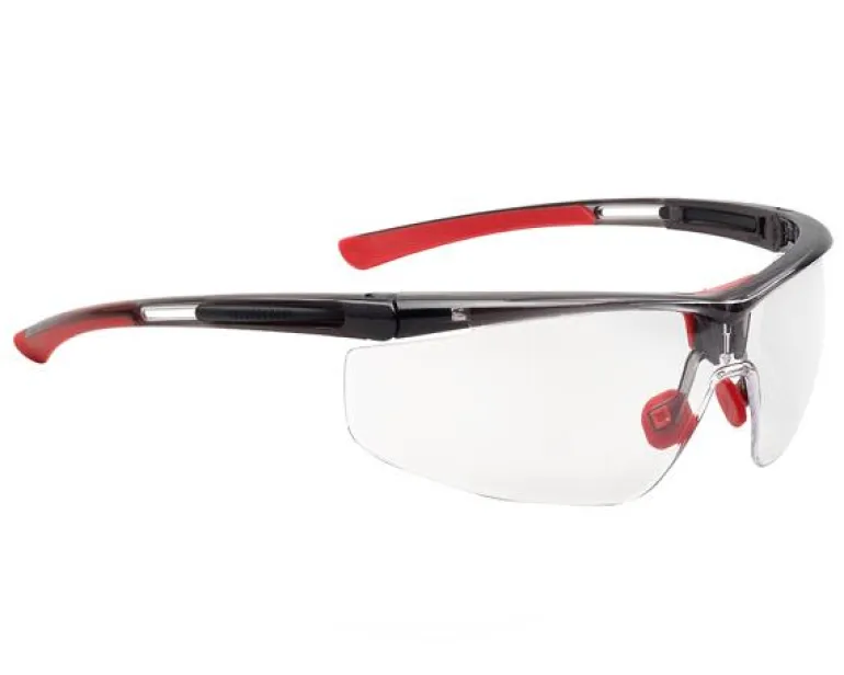 Honeywell Adaptec säädettävät suojalasit (mustat/punaiset) kirkkaalla linssillä. Linsseissä on 4A+ -pinnoite (K&N) molemmin puolin, mikä tarjoaa erinomaiset huurtumisenesto-, antistaattiset ja naarmuuntumista ehkäisevät ominaisuudet.