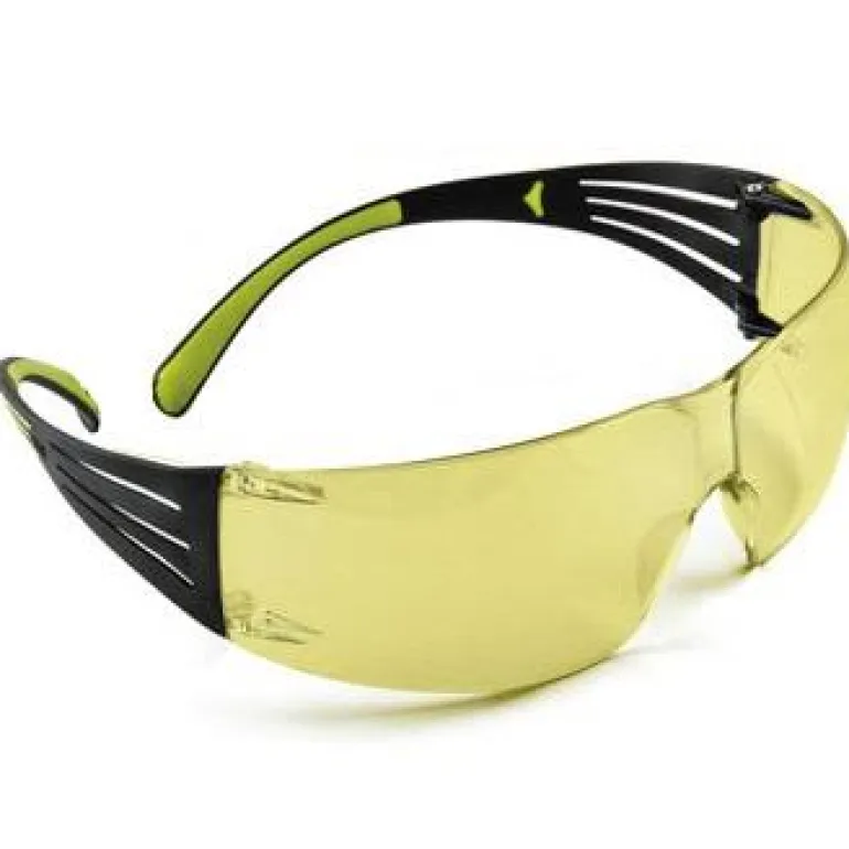 Suojalasit, joissa on keltainen linssi sekä naarmuja ja huurtumista ehkäisevä pinnoitus. Pehmeät ja erittäin kevyet sangat parannettua käyttömukavuutta varten. Pehmeät säädettävät nenäpehmusteet.