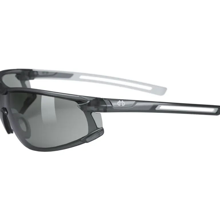 Suojalasit, joissa on fotokromaattinen linssi, joka muuttaa väriä ja tummenee auringonvalossa. Täyspeitteinen kaari säädettävillä linsseillä, yhdistettynä sankojen ja nenäsillan pehmeän kaksoismateriaalin kanssa tarjoaa erinomaisen istuvuuden kaikille käyttäjille.