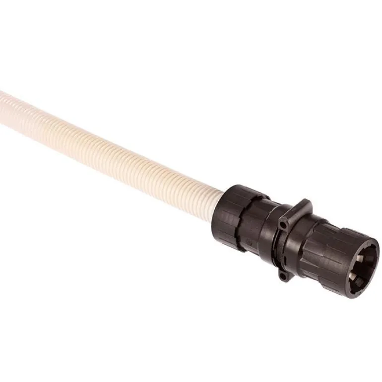 Suojaputken supistuskappale, joka pienentää Uponor-suojaputken 28/23 mm kokoon 25/20 mm, suojaputki Ø25 mm asennettuna. Kiinnitysrenkailla, valmistettu polypropeenista.