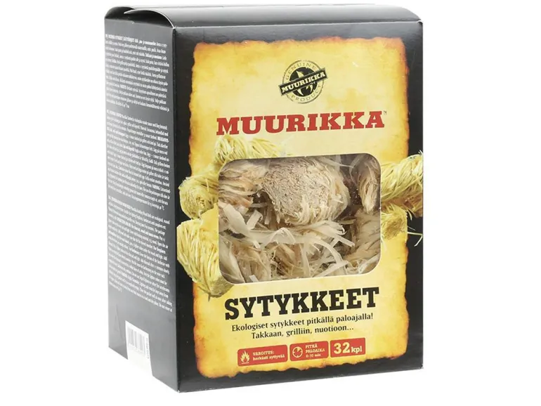 Muurikka Sytykkeet ovat ekologisia, pitkän paloajan omaavia, vahattuja sytykkeitä. Ne soveltuvat hyvin esim. takkojen, grillien ja nuotion sytyttämiseen.