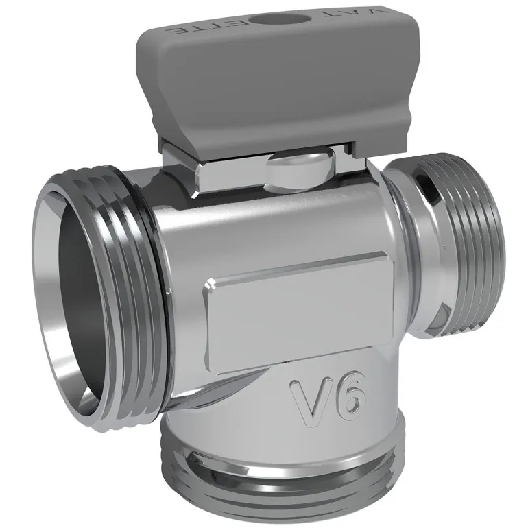 Vatette-T-kuulasulkuventtiili lyhyellä asennuspituudella 60 c/c:tä varten. Huom. Liitäntä ainoastaan ”Vatette Plast Dy20” ja Vatette V6 Dy22-puserrusliittimen kanssa. Ei tarkoitettu puserrus-/kiristysrengasta varten.