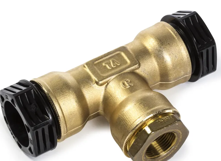 T-liitin metalliholkilla ETL- ja T2Red -lämmityskaapeliin. Täydennetään vedenpitävällä läpiviennillä.