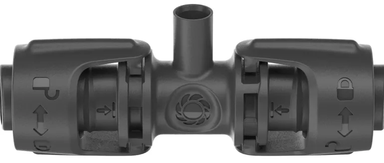 Patentoidun liitostekniikan ansiosta voit laajentaa Micro-Drip-järjestelmääsi puutarhassa nopeasti, helposti ja joustavasti. MDS-osien liittäminen on helppoa selkeiden symbolien ansiosta. Lukituksesta selvästi kuuluva napsahdus vahvistaa onnistuneen kiinnityksen. Uudelleenkäytettävyys tukee kestävää kehitystä: Quick & Easy -liitostekniikan ansiosta voit vaivattomasti liittää MDS-sarjan osia toisiinsa ja irrottaa ne, kun haluat muokata kastelujärjestelmää. Micro-Drip-järjestelmä on luotettavasti vesitiivis ja sen vedenpaine on tasainen erikseen saatavien Perusyksikkö 1000:n (13333-20) tai 2000:n (13310-20) ansiosta. Suihkusuuttimien T-liitin on Euroopassa valmistettu laatutuote.