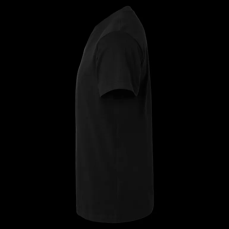 Klassinen single jersey -trikoinen T-paita, 100 % kampapuuvillaa. Kaksinkertainen reunus elastaanilla. Ilman sivusaumoja.