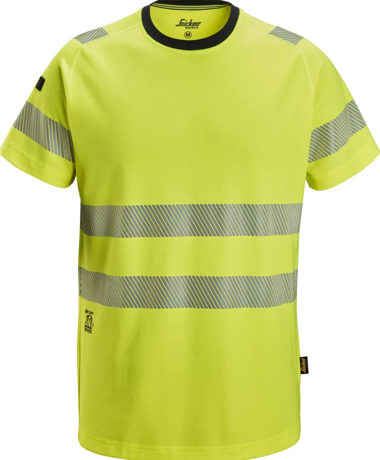 Kaksinkertaisesta kudoksesta valmistettu monipuolinen huomio-T-paita. Sisäpuolella pehmeä puuvillapinta ja ulkopuolella kestävää polyesteriä ja segmentoitu, lämpöpainettu heijastinnauha. Huomio-T-paita tarjoaa luokan 2 näkyvyyden standardin EN ISO 20471 mukaisesti. Lisäksi T-paidassa on liikkuvuutta parantavat raglanhihat. Tuulettuva kaksinkertainen kudos (verkkorakenne).