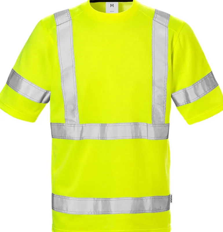Nopeasti kuivuvasta, joustavasta materiaalista valmistettu t-paita, joka siirtää kosteuden pois iholta. Tässä paidassa on puuvillainen sisäpinta, joustava pääntie ja applikoidut heijastimet, joten se sopii täydellisesti teolliseen pesuun. Kylkikappaleiden upotukset ja hihat ilman heijastimia takaavat paremman liikkumisvapauden. Paita on Öko-Tex-sertifioitu, hyväksytty EN ISO 20471 luokan 2 (koot XS–M) ja luokan 3 (koot L–3XL) mukaisesti, EN 13758-2 UPF 40+ UV-suojaus. Se on testattu teollisen pesustandardin ISO 15797 mukaisesti.