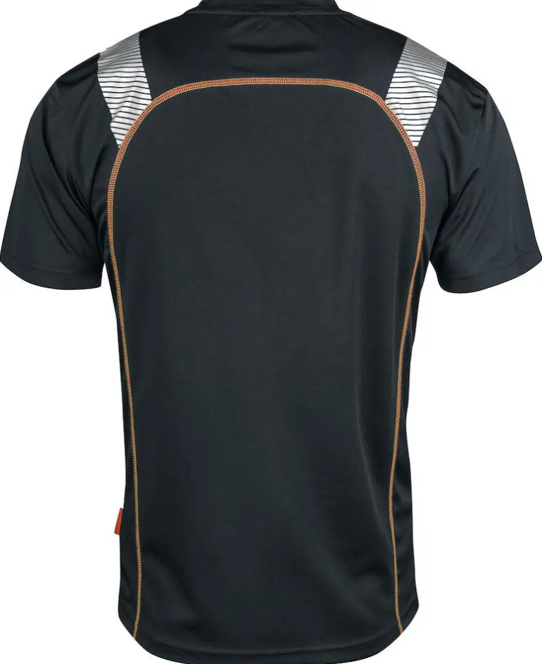 T-paita joustavasta polyesteristä, jonka hihat ja sivukappaleet ovat pehmeää interlock-neulosta ja etu- ja takaosa kosteutta siirtävää verkkoneulosta. Spun Dye on ympäristöystävällisempi värjäysmenetelmä, jossa käytetään vähemmän vettä ja joka säästää energiaa sekä vähentää valmistuksessa käytettävien kemikaalien määrää.