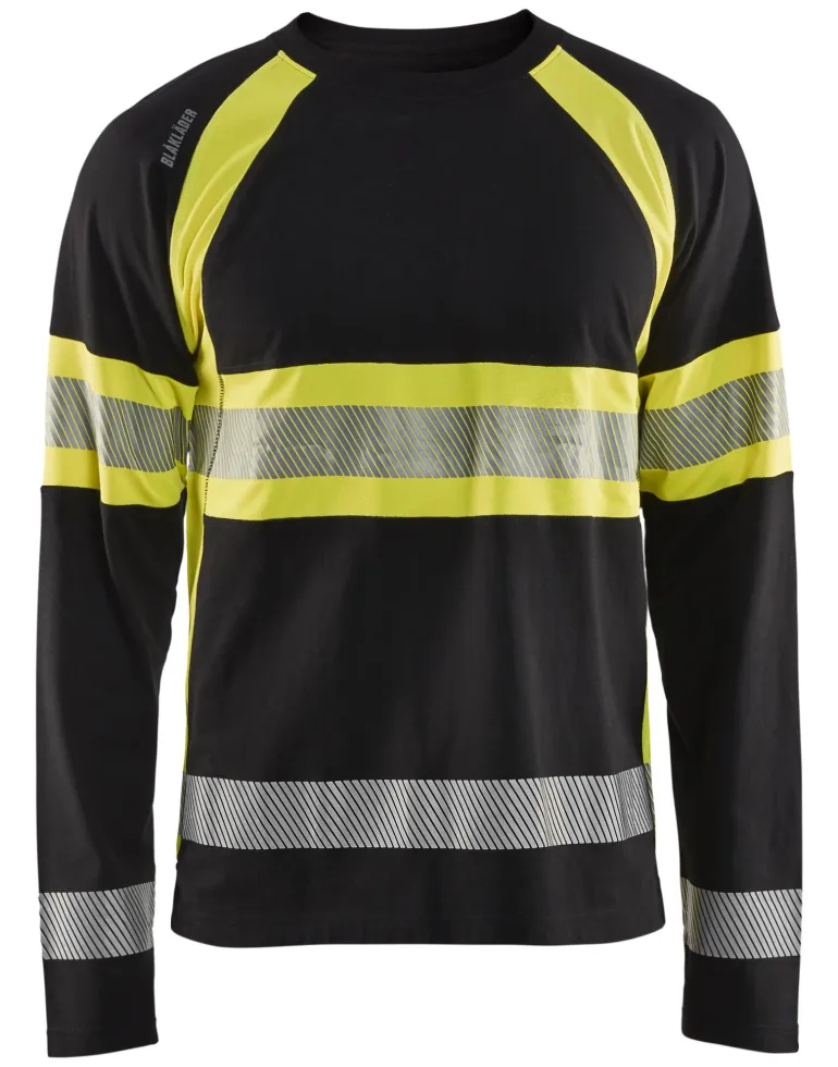 Pitkähihainen t-paita 100 % puuvillaa, huomiosertifioitu luokan 1 mukaisesti. Paidassa on huomioalueet ja segmentoidut heijastimet, mikä takaa erittäin hyvän näkyvyyden riskiympäristöissä.