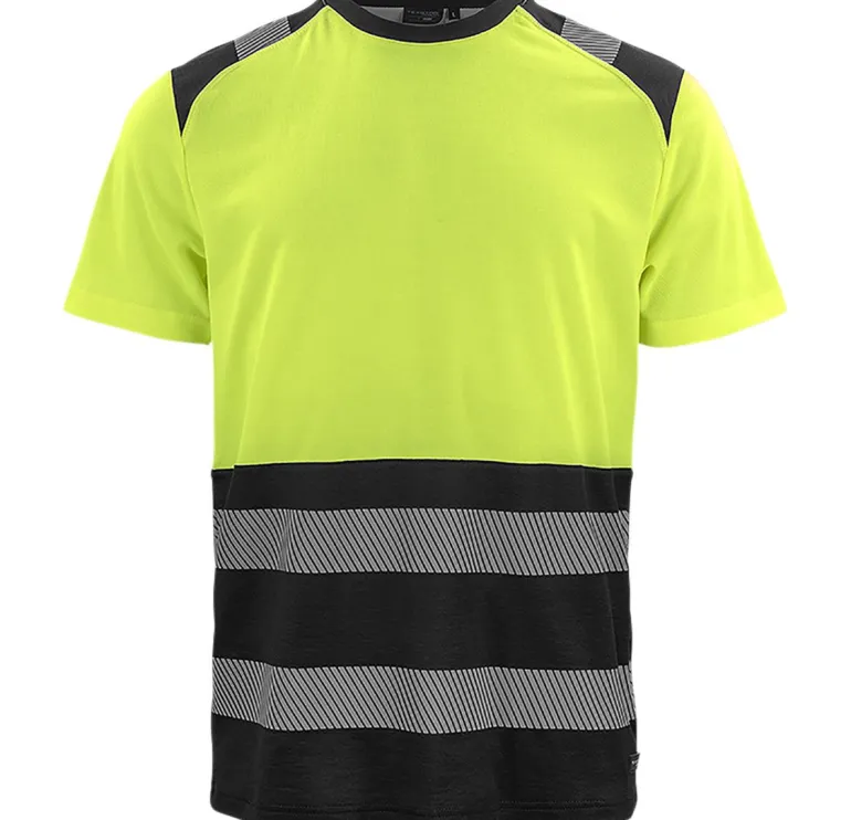 Huomiovärinen T-paita tyylikkäällä muotoilulla, joka on suunniteltu lisäämään näkyvyyttä haastavissa työympäristöissä. Erittäin hyvin heijastavat värit ja heijastimet lisäävät näkyvyyttä kaikissa valaistusolosuhteissa ja lisäävät tältä osin turvallisuutta ja näkyvyyttä.