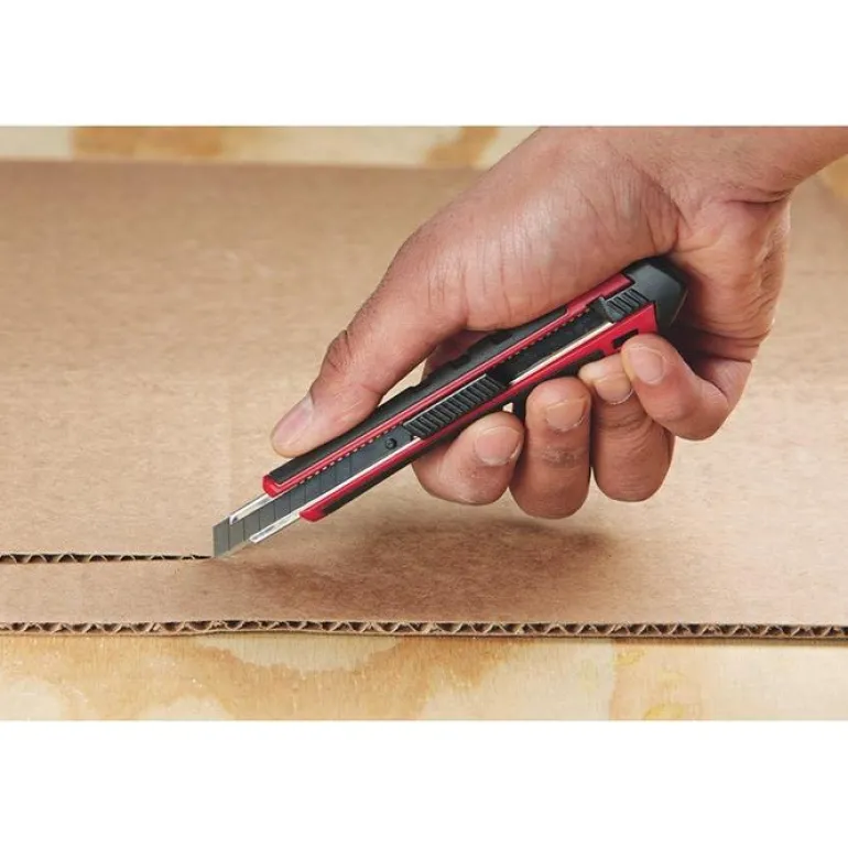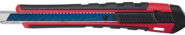 Työveitsi, jonka terän leveys on 9 mm. 13 katkaisukohtaa. Pikalukitus mahdollistaa terän helpon säädön.