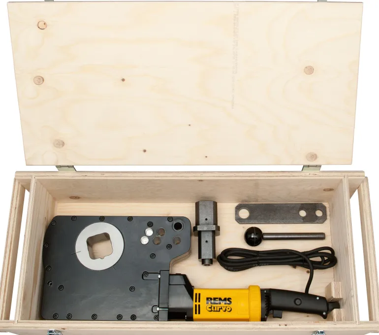 Sähköinen putkentaivutin Ø10 – 50 mm, enintään 90°. Koneessa huoltovapaa käyttömekanismi, turvakytkin, yleismoottori 230 V, 50 – 60 Hz, 1000 W, portaaton, elektroninen turvakytkin, jossa suunnanvaihto. Neliövääntiö 35 – 50, tuki 35 – 50, liukukappaleen pultti. Esimerkiksi teräsputket EN 10255 ؼ – 1¼”, ruostumattomat teräsputket EN ISO 1127, EN 10217-7, ؽ – 1¼”, s < 2,6 mm, kovat, puolikovat, pehmeät kupariputket, Ø 10 – 42 mm, ohutseinämäiset kupariputket Ø 10 – 35 mm, paksuseinämäiset kupariputket K65 jäähdytys- ja lämmitystekniikkaa varten EN 12735-1 Ø⅜ – 1⅝", puristusmuhvijärjestelmien ruostumattomasta teräksestä valmistetut putket Ø12 – 42 mm, C-teräs Ø12 – 42 mm, C-teräs, muovieristetty Ø12 – 28 mm, muoviputket, joissa on metallinen upote Ø14 – 50 mm. Tukevassa kotelossa.