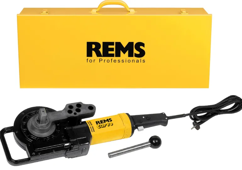 Verkkovirtakäyttöineen taivutuskone putkien taivutukseen ilman taitoksia. Yleiskäyttöinen, monille eri putkityypeille, soveltuu esimerkiksi saniteetti-, lämmitys-, ilmanvaihto- ja jäähdytystekniikan töihin ja hydrauliikkaan. Ilman taivutussegmenttejä ja liukukappaleita Nopea ja hidas liike pikapysäytyksellä tarkkaa taivutusta varte, voidaan käyttää myös ilman säätötöitä. Soveltuu puristusmuhvijärjestelmiin, koville ja puolikoville kupariputkille ja ohutseinämäisille kupariputkille standardin EN 1057 mukaisesti. Vain yhden tyyppinen taivutussegmentti ja liukukappale malleihin REMS Curvo ja REMS Sinus. Integroitu vääntömomentin säätö taivutuksen aikana. Muoto- ja painevakaa, valmistettu iskunkestävästä lasikuituvahvisteisesta polyamidista, hyvät liukuominaisuudet. Kulma-asteikko 0–180° jokaisessa taivutussegmentissä ja merkintä jokaisessa liukukappaleessa tarkkaa taivutusta varten. iskunvaimennus molempiin suuntiin turvakytkimen ansiosta. Suunnanvaihto. Portaaton, elektroninen turvakytkin ja nopea ja hidas liike. Putkille Ø10 – 40 mm, ؼ – 1⅜”, 180°:seen asti.