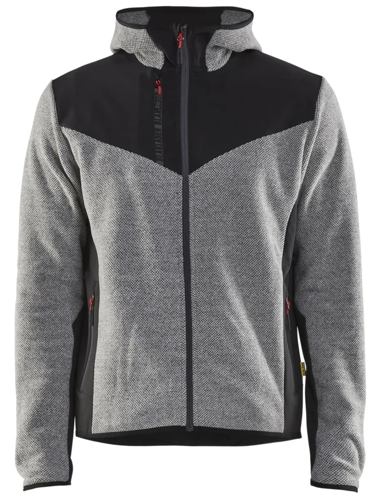 Hupullinen neulottu takki on tyylikäs, ja sen fleecemateriaali uskomattoman miellyttävää. Takki on valmistettu uudesta ainutlaatuisesta materiaalista, jota voidaan kuvailla kolmiulotteiseksi fleeceksi. Harjatun materiaalinsa ansiosta takin pintakuvio on kolmiulotteinen ja takki on joustava, sileä ja mukava sekä lämmittää silloin, kun sitä eniten tarvitaan. Kulumiselle alttiissa kohdissa on vahvuutta lisäävät softshell-paneelit. Kainaloissa ei ole softshell-materiaalia, mikä parantaa takin ilmanvaihtoa. 5940-mallissa on erinomaiset pinnat profiloinnille, mutta se soveltuu yhtä hyvin sekä työhön että vapaa-aikaan. Yksisuuntainen muovivetoketju, sisäetulista. Vetoketjullinen rintatasku. Vetoketjulliset etutaskut. Pidempi takakappale, joustava nauha helmassa. Hihansuissa joustava nauha. Materiaali: 97 % polyesteria, 3 % elastaania, Jacquard-neulos, harjattu takaosa, stretch, 290 g/m2. Pesuohje: 40 °C.