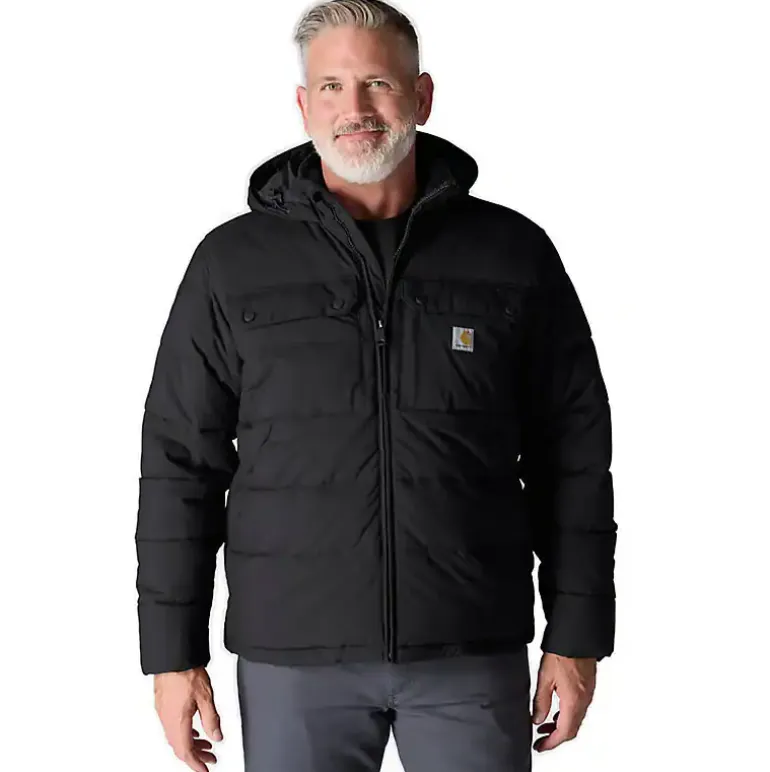 Carharttin takki, joka sopii sekä arki- että työkäyttöön. Takki on erittäin kulutusta kestävä, lämmin ja mukava päällä. DWR-käsitelty nailonkuori hylkii kevyttä sadetta ja likaa, ja Rain Defender™- sekä Wind Fighter™ -teknologiat pitävät sinut kuivana ja suojaavat tuulelta. Sisäpuolella kevyt sherpa-vuori tuntuu pehmeältä ja lämpimältä, ja Syncloud Loft -eristys auttaa säilyttämään lämmön myös lämpötilan laskiessa. Loose fit -istuvuus (isohko). Kiinteä, kolmiosainen huppu piilotetulla kiristysnyörillä sekä korkea kaulus tarjoavat lisäsuojaa sään muuttuessa. Vetoketjulliset sivutaskut ja ulkopuoliset rintataskut napeilla (vasemmassa piilovetoketju). Pidennetty takahelma säädettävällä kiristysnyörillä suojaa selkää liikkeessä, ja joustavat hihansuut pitävät kylmän loitolla. Kankaan paino on 153 g/m², mikä tekee takista keskipainoisen – se yhdistää hyvän liikkuvuuden ja kestävyyden, ollen riittävän jämäkkä päivittäiseen käyttöön mutta silti kevyt ja mukava koko päivän pidettäväksi. Tämä takki on sinulle, joka tarvitset lämpöä, sääsuojaa ja kestävyyttä. Täydellinen sekä työhön että vapaa-aikaan. Kangas 100 % nailonista.