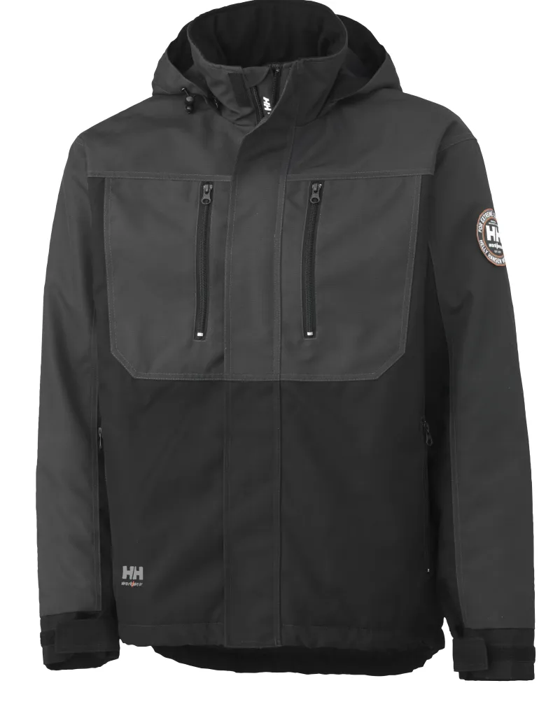 Takin sisäpuolella on fleecekaulus, piilotettu irrotettava huppu, leuansuojus ja vetoketjullinen myrskyläppä. Takissa on kaksi rintataskua, kaksi vetoketjullista etutaskua, yksi sisätasku, tarranauhalla säädettävät hihansuut ja kiristysnyörillä suljettava napitus helmassa. Lisäksi vyötäröllä kiristysnyöri, pidennetty takaosa ja sisäpuolella lenkki henkilökorttia varten.