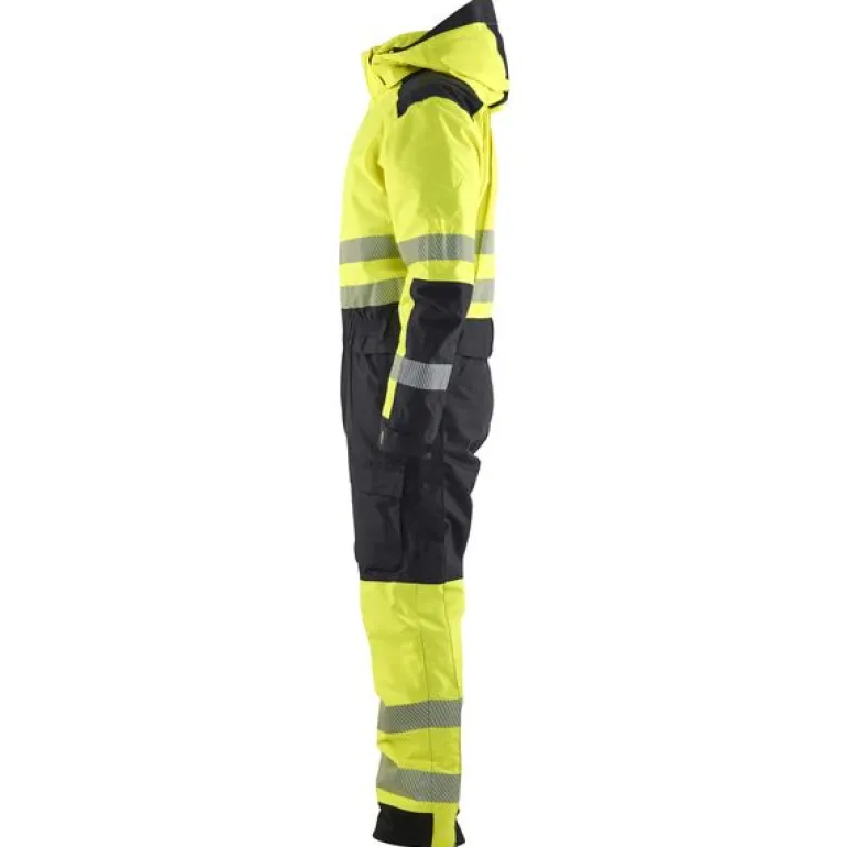 100 % polyesteri, oxford, laminoitu, tuulenpitävä, vedenpitävä 15000 mm, hengittävä Ret 8,5, 200 g/m². Tuulen- ja vedenpitävä, hengittävä materiaali. 15000 mm/4 000 g/m²/24 h. Fluoresoivat värit ovat EN ISO 20471 -standardin mukaisia (Näkyvä varoitusvaatetus ammattikäyttöön). Materiaali on EN 343 -standardin luokan 3/3 -mukainen (Suojaus sateelta).