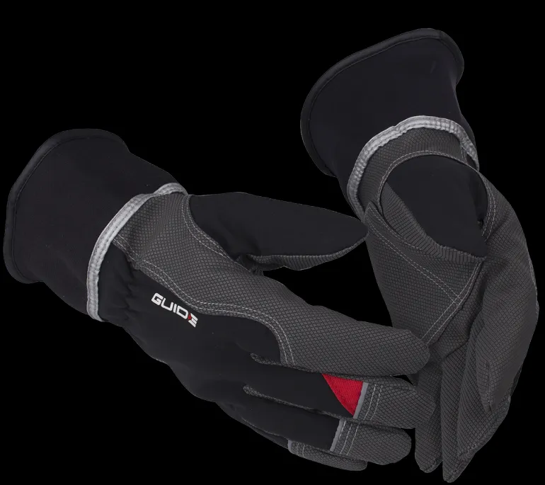Guide Gloves 5151W on talvikäsine synteettistä nahkaa, jonka kämmenpuoli vettähylkivää PU-materiaalia. Kämmenselkä tuulen- ja vedenpitävää softshelliä. Kämmenselässä heijastimet näkyvyyden parantamiseksi.