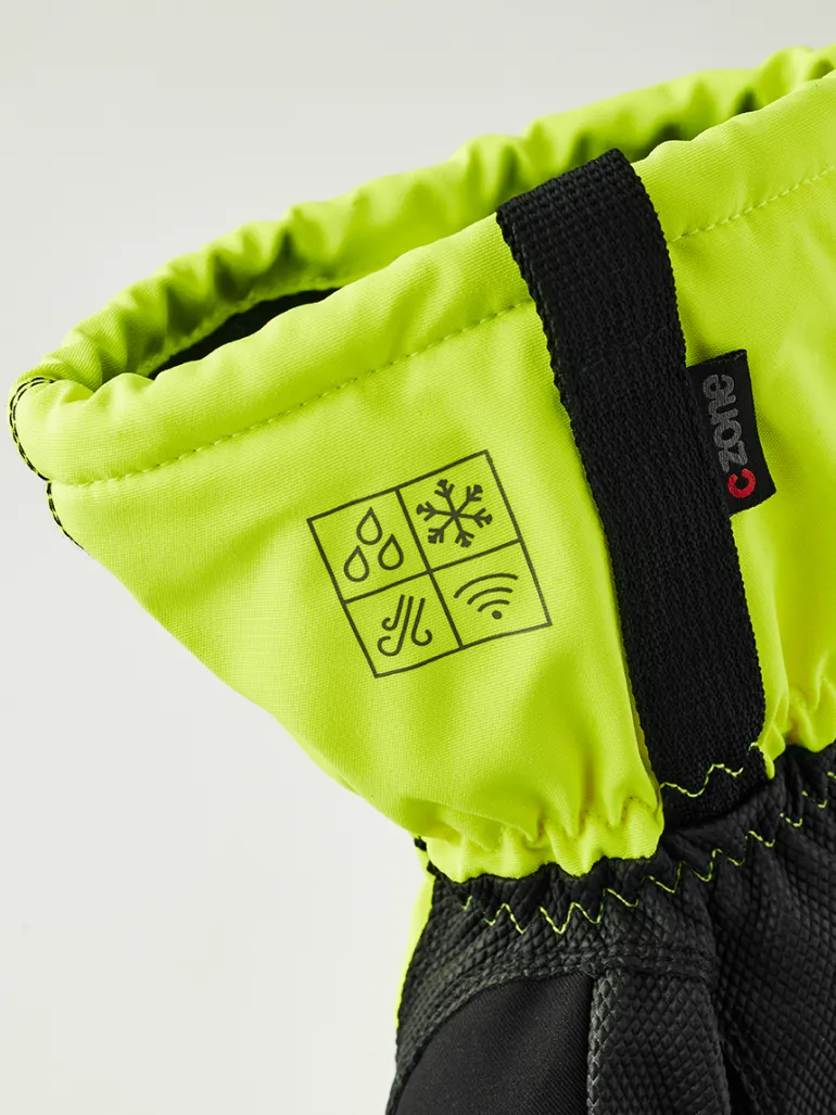 Talvityökäsine pidemmällä rannekkeella ja lumilukolla. Kämmenosa kestävää synteettimateriaalia, joka tarjoaa erinomaisen otteen. Vedenpitävä CZone-kalvo, joka on hengittävä ja kosteutta siirtävä.