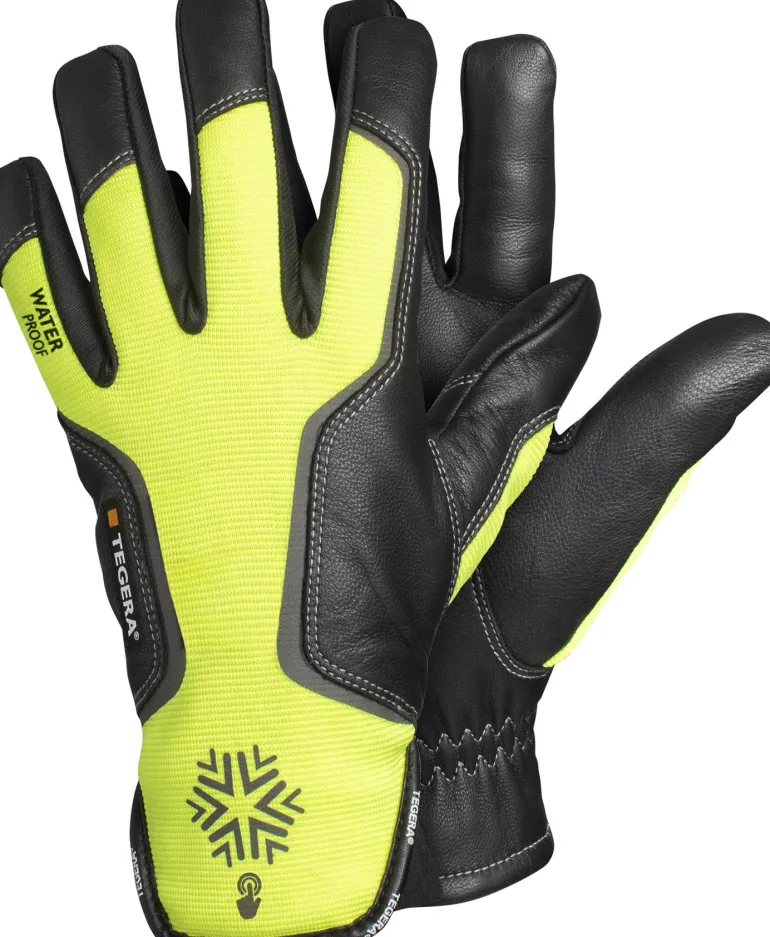 Tegera 7798 on nahkakäsine talvivuorella. Huomiovärillinen kämmenselkä heijastimella sekä vahvike etusormessa. Vedenpitävät. Soveltuvat yleistöihin.