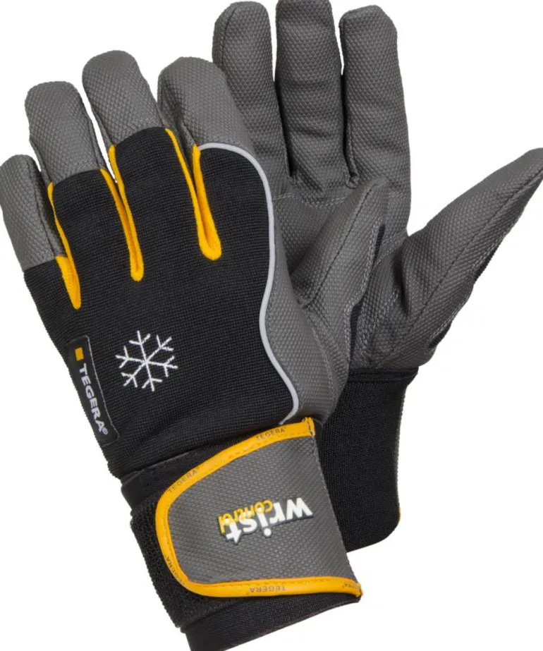 Työkäsine Microthan®+-keinonahkaa, jossa rannetuki ja fleecevuorattu talvivuori. Tegera WristControl ammattimaiseen työhön, jossa tarvitaan ylimääräistä ergonomista tukea ranteelle. Hyvä pito ja istuvuus. Ergonomiset toiminnot kuten vahvike etusormessa, vahvistetut saumat, muotoillut nivelletyt sormet sekä erikoissuunniteltu peukalo-osa.