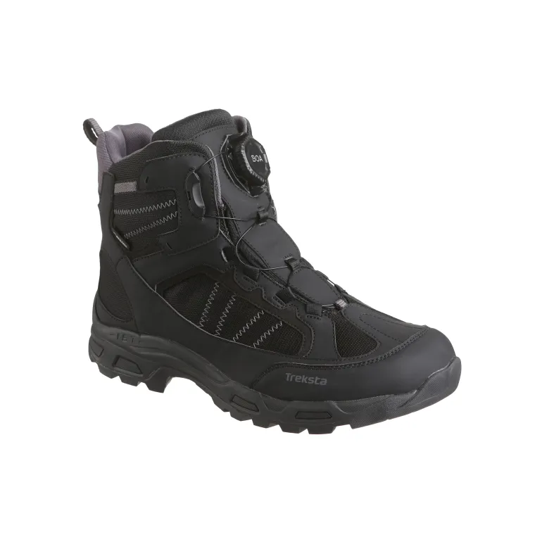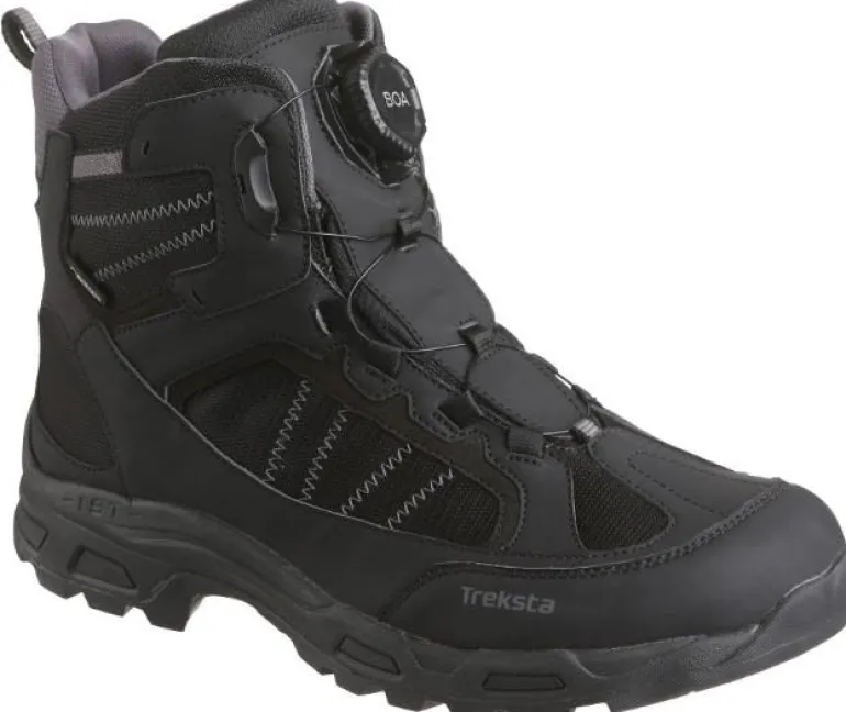 Treksta Hercules GTX BOA® on musta lämminvuorattu (villa) talvikenkä BOA® Fit System-nauhoituksella optimaalista istuvuutta varten. GORE-TEX®-vuori tekee kengästä 100 % vedenpitävän. 7 tuumaa (17,78 cm) korkea talvijalkine sopii monipuolisesti eri talviaktiviteetteihin ja myös esim. moottorikelkkailuun (sileässä rakenteessa ei ole koukkuja, jotka voisivat vahingoittaa istuinta). Välipohja erinomaisella iskunvaimennuksella. Kumi, joka ei kovetu pakkaslämpötiloissa. Ulkopohjan ICE-LOCK™-rakenne antaa maksimaalisen pidon jäisillä ja liukkailla pinnoilla. Hieman leveämpi NESTFIT-lesti. Päällismateriaali tekstiiliä (synteettinen), mikä helpottaa puhtaana pitämistä, pidentää kengän käyttöikää ja kuivuu nopeammin.