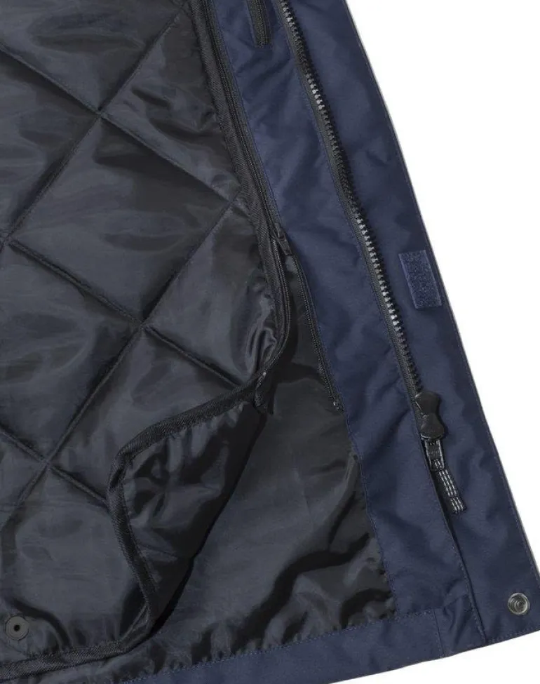 Talvitakki veden- ja tuulenpitävästä Airtech-materiaalista. Hengittävä. Irrotettavan tikkivuoren ansiosta takkia voidaan käyttää myös kuoritakkina.