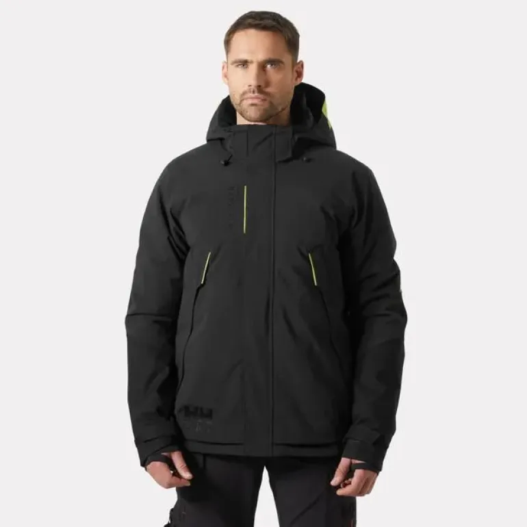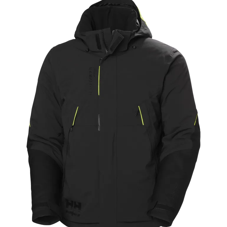 Helly Hansen Workwear Magni Evolution -talvitakki vedenpitävästä, hengittävästä ja tuulenpitävästä HELLY TECH® Professional -kankaasta. Takki on myös varustettu H2Flow™-lämmönsäätötekniikalla, jotta pysyt lämpimänä ja kuivana kylmimpinäkin päivinä. Tämä järjestelmä on kehitetty yhdessä vuoristoasiantuntijoiden kanssa, ja se tarjoaa käyttömukavuutta myös silloin, kun ulkolämpötila ja kehon lämpötila vaihtelevat päivän aikana. Magni Evo -talvitakki suojaa sinua vaativimmissakin työolosuhteissa, sillä siinä on pidennetty takakappale ja Cordura®-kangasvahvikkeet juuri niissä paikoissa, missä niitä eniten tarvitaan. Helly Hansen Workwear -työvaatteissa käyttömukavuus ei ole koskaan valinnainen ominaisuus. Mukauta istuvuutta säädettävällä helmalla, hihansuilla, kauluksella ja hupulla – tai irrota huppu kokonaan. Kaikki tarvitsemasi tavarat pysyvät käden ulottuvilla ja turvassa sisä- ja ulkotaskuissa sekä sisäpuolella olevassa puhelinpidikkeessä. Turvallisuusominaisuuksiin kuuluu Life Pocket+™, joka säästää matkapuhelimesi akkua, jotta voit pitää yhteyttä työtovereihisi. Kun tarvitset paksun ja luotettavan talvitakin, löydät sen Helly Hansen Workweariltä. Magni on Helly Hansen Workwearin huippukonsepti – paras parhaista – eikä tämä paksu talvitakki ole poikkeus.
