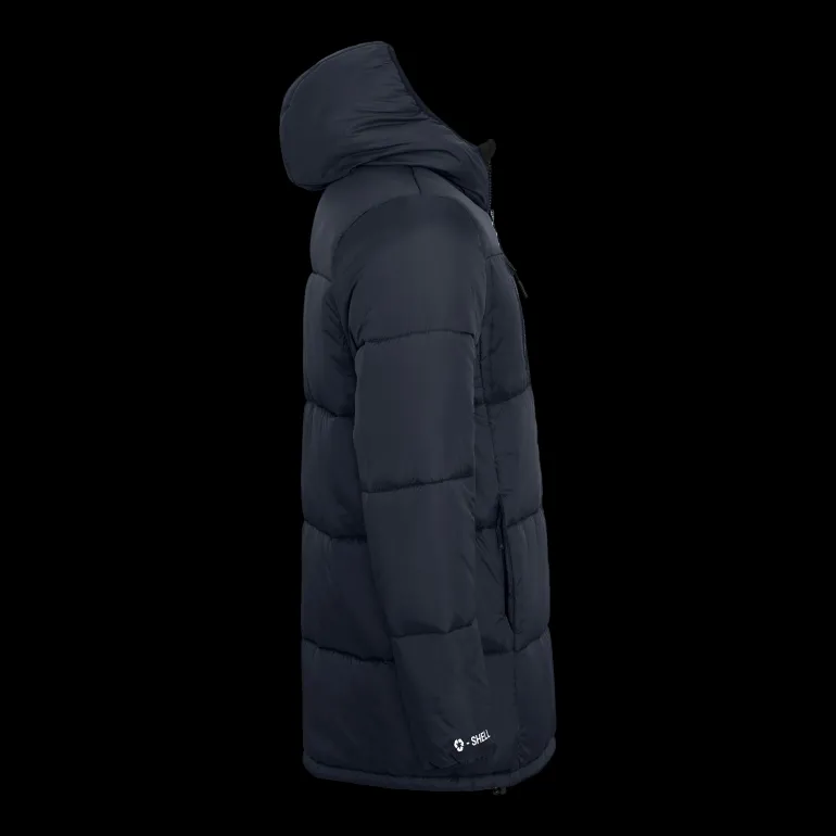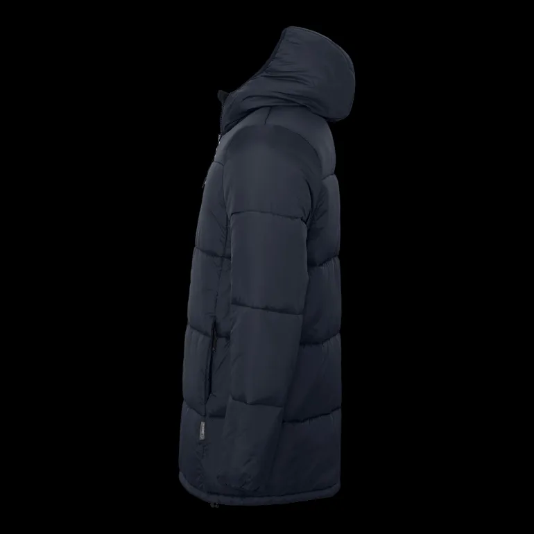 Pitkä talvivuorillinen takki kierrätettyä polyesteriä. Tuulenpitävä ja vettähylkivä PFC-vapaalla Bionic Eco -kyllästyksellä. Kaksi sivutaskua, rintatasku ja kiinteä huppu.